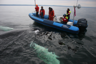 The Mingan Island Cetacean Study (MICS) was founded in 1979 and in 2018 it will be entering its 40th field season in the Gulf of St. Lawrence. The project focuses on baleen whale species, such as blue and fin whales and uses photo-identification, satellite tagging, genetic sampling and other methods to estimate population numbers and survival rates and to determine temporal and spatial distribution and habitat use1-5. The unique long-term data sets generated by the project are allowing the team to monitor population parameters over time and detect important trends1,2. The project has also documented a worrying shift in the arrival times of whales to this important feeding ground, an indication that climate change is affecting whale migrations and their prey3. This important information is published in scientific journals and shared with other bodies responsible for conservation and management of the whales.