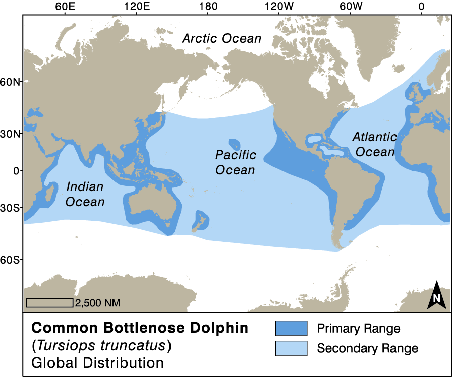 Common Bottlenose dolphins are native to the following countries: Albania; Algeria; American Samoa; Angola; Anguilla; Antigua and Barbuda; Argentina; Aruba; Australia; Bahamas; Bahrain; Bangladesh; Barbados; Belgium; Belize; Benin; Bermuda; Bonaire, Sint Eustatius and Saba (Saba, Sint Eustatius); Bosnia and Herzegovina; Brazil; Brunei Darussalam; Bulgaria; Cambodia; Cameroon; Canada; Cabo Verde; Cayman Islands; Chile; China; Cocos (Keeling) Islands; Colombia; Comoros; Cook Islands; Costa Rica; Côte d'Ivoire; Croatia; Cuba; Curaçao; Cyprus; Denmark; Djibouti; Dominica; Dominican Republic; Ecuador; Egypt; El Salvador; Falkland Islands (Malvinas); Faroe Islands; Fiji; France; French Guiana; French Polynesia; Gabon; Gambia; Georgia; Germany; Ghana; Gibraltar; Greece; Grenada; Guadeloupe; Guam; Guatemala; Guernsey; Guinea; Guinea-Bissau; Guyana; Haiti; Honduras; Hong Kong; India; Indonesia; Iran, Islamic Republic of; Ireland; Isle of Man; Israel; Italy; Jamaica; Japan; Jersey; Kenya; Kiribati; Korea, Republic of; Kuwait; Lebanon; Liberia; Libya; Madagascar; Malaysia; Maldives; Malta; Marshall Islands; Martinique; Mauritania; Mayotte; Mexico; Micronesia, Federated States of ; Monaco; Montenegro; Morocco; Mozambique; Myanmar; Namibia; Nauru; Netherlands; New Caledonia; New Zealand; Nicaragua; Nigeria; Niue; Northern Mariana Islands; Oman; Pakistan; Palau; Panama; Papua New Guinea; Peru; Philippines; Pitcairn; Portugal; Puerto Rico; Qatar; Réunion; Romania; Russian Federation; Saint Helena, Ascension and Tristan da Cunha; Saint Kitts and Nevis; Saint Lucia; Saint Martin (French part); Saint Pierre and Miquelon; Saint Vincent and the Grenadines; Samoa; Sao Tomé and Principe; Saudi Arabia; Senegal; Seychelles; Singapore; Sint Maarten (Dutch part); Slovenia; Solomon Islands; Somalia; South Africa; Spain; Sri Lanka; Suriname; Syrian Arab Republic; Taiwan, Province of China; Tanzania, United Republic of; Thailand; Togo; Tonga; Trinidad and Tobago; Tunisia; Turkey; Turks and Caicos Islands; Ukraine; United Arab Emirates; Uruguay; Vanuatu; Venezuela, Bolivarian Republic of; Viet Nam; United Kingdom, United Sates.; Wallis and Futuna; Western Sahara; Yemen